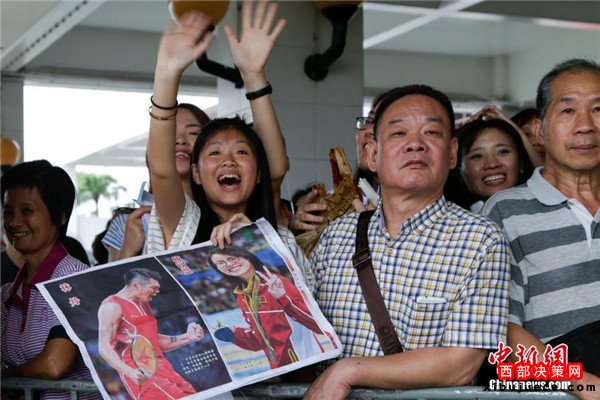 8月29日,里約奧運(yùn)會(huì)國(guó)家?jiàn)W運(yùn)精英代表團(tuán)抵達(dá)澳門,展開(kāi)一連4天的訪問(wèn)行程,與澳門市民近距離交流。 中新社記者 張宇 攝
