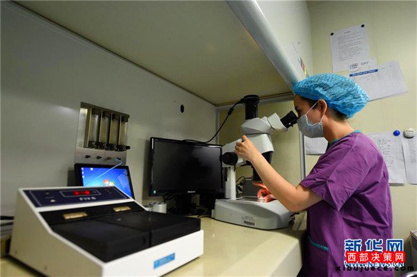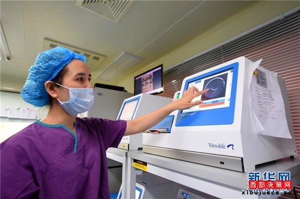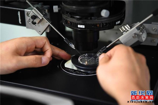 重慶市遺傳與生殖研究所實(shí)驗(yàn)室工作人員在顯微鏡下對胚胎進(jìn)行操作