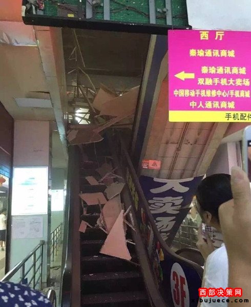 (通訊員 展?。?nbsp;今天中午1點(diǎn)左右,西安市西華門海星智能廣場四樓賣場電梯頂?shù)蹴斖蝗幻撀?。商戶們說,房頂是木質(zhì)結(jié)構(gòu),坍塌毫無預(yù)兆。事故所幸暫時(shí)沒有人員受傷!