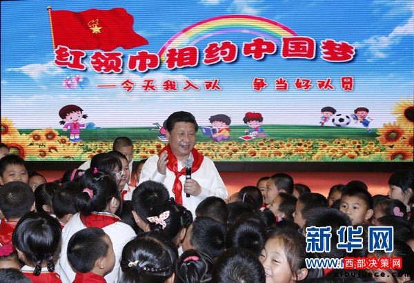 ?。?014年5月30日,習(xí)近平來到北京市海淀區(qū)民族小學(xué),參加慶祝“六一”國際兒童節(jié)活動。這是習(xí)近平在參加少先隊入隊儀式時,向少先隊員們致以節(jié)日問候。新華社記者鞠鵬攝)