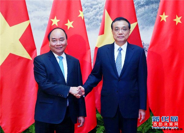 9月12日,國務院總理李克強在北京人民大會堂同來華進行正式訪問的越南總理阮春福舉行會談。