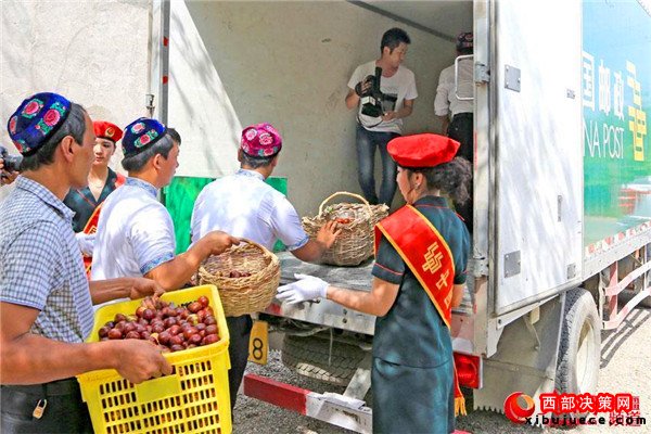 五堡鎮(zhèn)拉甫喬克村的棗農(nóng)通過郵政外銷大棗