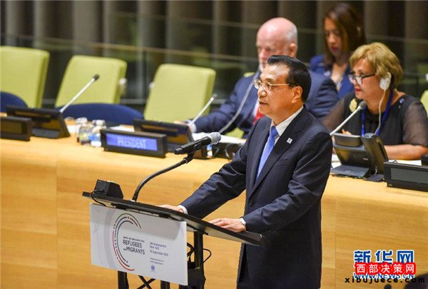 國(guó)務(wù)院總理李克強(qiáng)當(dāng)?shù)貢r(shí)間19日上午在紐約聯(lián)合國(guó)總部出席第71屆聯(lián)大解決難民和移民大規(guī)模流動(dòng)問(wèn)題高級(jí)別會(huì)議并發(fā)言。