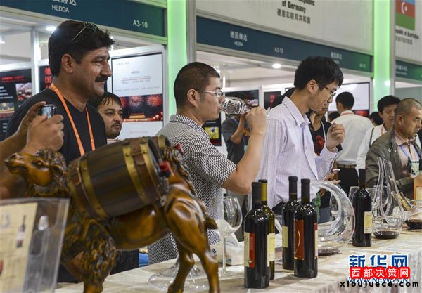 在第三屆中國(guó)—亞歐博覽會(huì)上,參觀(guān)者在格魯吉亞展區(qū)品嘗紅酒(2013年9月3日攝)。
