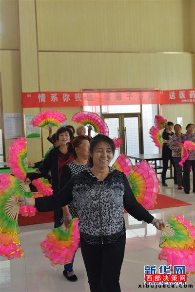 準(zhǔn)格爾旗巴潤哈岱村村民在村里的文化活動室表演自導(dǎo)自演的節(jié)目(9月24日攝)。