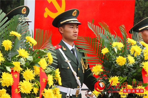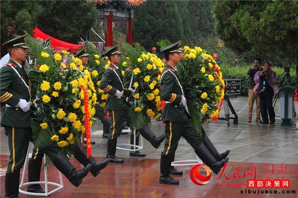 甘肅省領(lǐng)導(dǎo)和各界群眾代表向會師紀(jì)念塔敬獻(xiàn)花籃