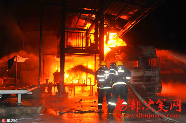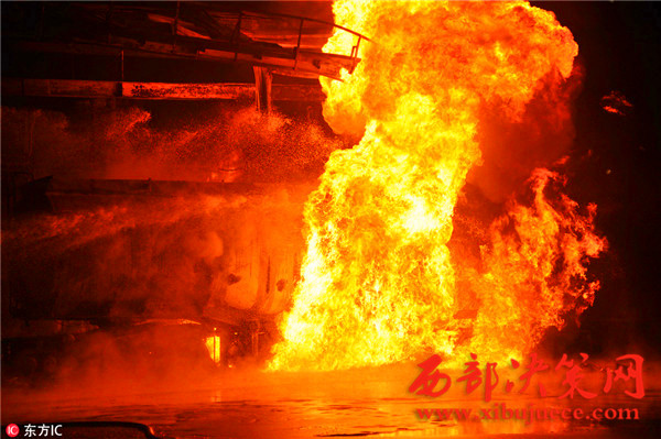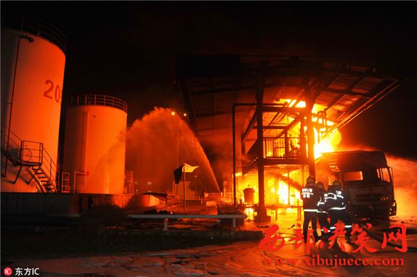 據(jù)了解,事故發(fā)生油罐區(qū)占地約40畝,主要生產(chǎn)航空汽油,油罐區(qū)共有油罐10個(gè),油罐內(nèi)裝有原料及航空汽油約300余噸,發(fā)油平臺(tái)往罐車(chē)內(nèi)輸送航空汽油時(shí)突然發(fā)生火災(zāi),燒毀發(fā)油平臺(tái)及油罐車(chē)等,著火油罐車(chē)儲(chǔ)量30噸,著火時(shí)車(chē)內(nèi)汽油約10噸,過(guò)濾器中有油約7噸,共計(jì)約17噸燃油,離鄰近儲(chǔ)油罐約30米。