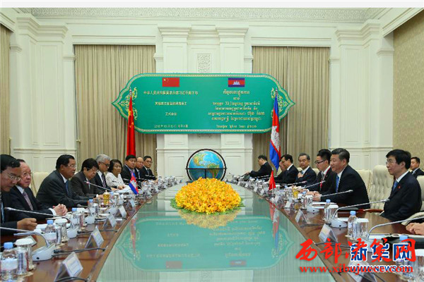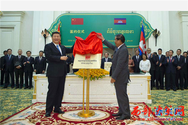會談后,兩國領導人共同見證了外交、共建“一帶一路”、產能合作、投資、水利、新聞、海洋等領域多項雙邊合作文件的簽署,并共同出席金邊中國文化中心揭牌儀式。