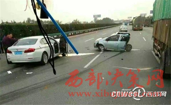 10月16日下午5點(diǎn)左右,西寶高速楊凌西至扶風(fēng)絳帳段,一輛牌照為甘EQ0029的白色寶馬小轎車與其前方行駛的一輛陜AJ835R的銀色比亞迪轎車發(fā)生追尾事故,事故造成比亞迪轎車內(nèi)乘坐的4人當(dāng)場死亡,寶馬轎車內(nèi)一人經(jīng)送醫(yī)院搶救無效死亡,車禍現(xiàn)場慘烈。