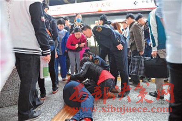 2015年5月13日早高峰時(shí)間段,沈陽(yáng)地鐵1號(hào)線青年大街站站臺(tái),一名74歲的老人在人群中因擁擠而摔倒。老人對(duì)涉事人說:“我有老保,我不訛人”。
