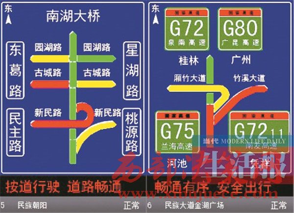 “至埌東客運(yùn)站旅行時(shí)間5分鐘”的提示,同時(shí)顯示周邊多條道路都是綠色……駕車(chē)在民族大道上會(huì)看到類(lèi)似這樣的提示,這是南寧交警部門(mén)與高德地圖合作的成果。目前,高德地圖提供的實(shí)時(shí)路況交通信息已經(jīng)陸續(xù)上線南寧市交通誘導(dǎo)屏。在民族大道沿線的60塊誘導(dǎo)屏,均可以清楚地反映實(shí)時(shí)路況信息和道路擁堵?tīng)顩r。
