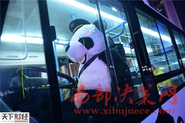 2016年11月25日,四川省成都市,一輛熊貓巴士亮相在繁華的春熙路吸引市民圍觀、停留拍攝。這輛巴士實際是一輛四川各大景區(qū)的售票車,大熊貓是四川特有的保護動物,從而便設計出了這一輛意義非凡的巴士,被當?shù)鼐W(wǎng)友稱為成都“史上最萌公交車”。