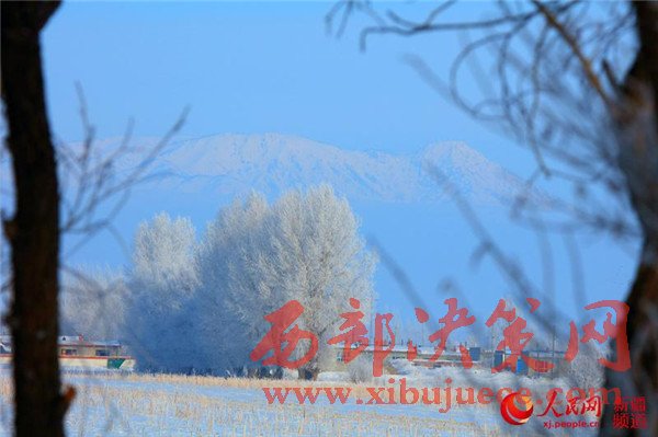 12月3日,拍攝于新疆阿勒泰地區(qū)哈巴河縣境內(nèi)的霜掛。