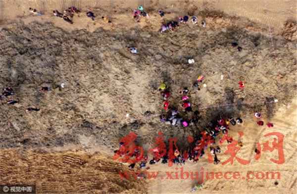 當天中午12點,中牟縣警方、文物所抵達現(xiàn)場,拉起了警戒線,對“挖寶”村民進行了疏散。