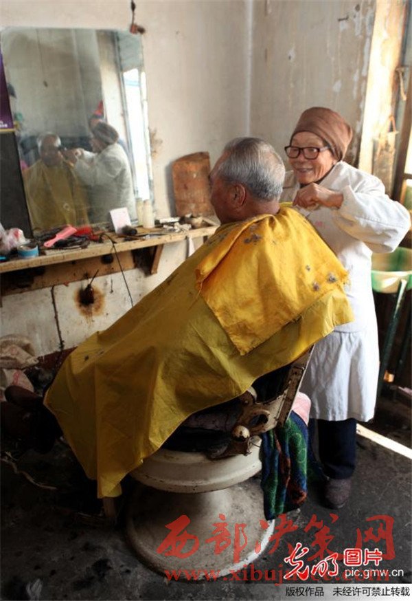 蔡瑞云幾十年來(lái)一直在河南許昌市區(qū)解放路與新興路交會(huì)處經(jīng)營(yíng)著她的"老中青理發(fā)店"。雖然店面只有10平方米,每月房租300元,但每次理發(fā)收費(fèi)卻只有2元,讓人感受到的是溫暖。