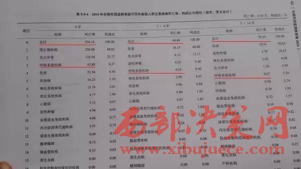 我們再來看這份國家衛(wèi)計(jì)委和中國疾病預(yù)防中心發(fā)布《中國死因數(shù)據(jù)集2014》,這是我國最權(quán)威的死因數(shù)據(jù)報(bào)告,其中兒童各年齡段的死亡率寫得很清楚。