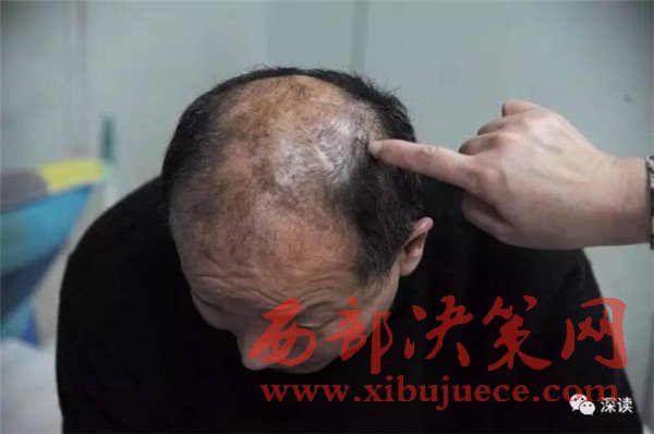 由于內(nèi)分泌失調(diào),直到現(xiàn)在,被補(bǔ)上的部分,都比其他地方亮。上面散布著零星的頭茬。