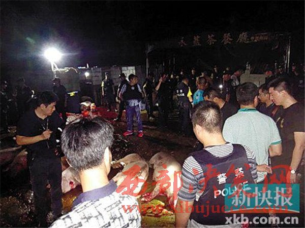 簡(jiǎn)陋的棚子、污水橫流、滿地豬血、隨意擺放的工具……這是私宰生豬場(chǎng)的真實(shí)場(chǎng)景。新快報(bào)12月21日?qǐng)?bào)道,深圳警方查處一私宰豬肉犯罪團(tuán)伙。據(jù)悉,在廣東省深圳市、東莞市,藏匿著5個(gè)生豬私宰窩點(diǎn),警方此次行動(dòng)繳獲作案車(chē)輛20余臺(tái),抓獲嫌疑人42名,繳獲私宰生豬150余頭,合約2.6萬(wàn)斤。此次行動(dòng)是深圳近年來(lái)破獲的打擊處理人數(shù)最多,唯一實(shí)現(xiàn)產(chǎn)、運(yùn)、銷全鏈條打擊的私宰案件。