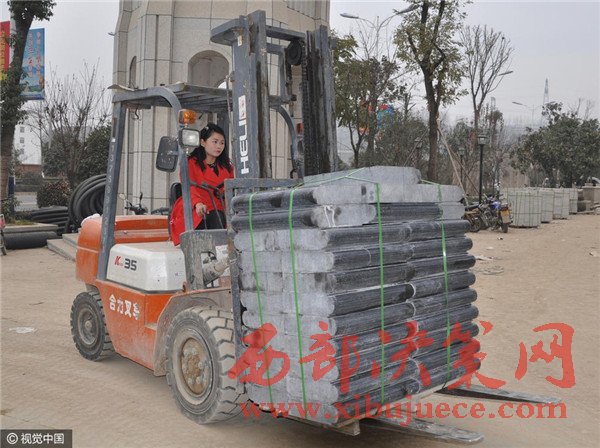 黃芳的丈夫在部隊服役時曾擔(dān)任過駕駛班班長,2005年退役。第二年,他與黃芳相識并步入婚姻殿堂。婚后,小兩口決心全力改變家庭貧困面貌。丈夫發(fā)揮所長,買了一輛農(nóng)用車,夫妻一起販賣蘋果、收破爛。過了幾年,丈夫又看準(zhǔn)了吊裝行業(yè)。兩口子傾其所有,并多處舉債購買了一輛吊車和叉車,經(jīng)營起了吊裝生意。小兩口男主外、女主內(nèi),分工明確。每當(dāng)看到丈夫早出晚歸,勞碌奔波的時候,她就想替丈夫分擔(dān)點。于是,黃芳就說服丈夫讓他教自己學(xué)起了開吊車。黃芳是洋縣龍亭鎮(zhèn)麻洞村的山里女子,結(jié)婚時連自行車都不會騎,硬是在丈夫的調(diào)教下,吊車、叉車、摩托車、小汽車樣樣精通,還取得了B2駕照。小兩口用心經(jīng)營、誠信待人,很快贏得業(yè)界的認(rèn)可,生意越做越好,吊車也增加到三輛。天有不測風(fēng)云,去年7月,眼看購車欠下的巨額債務(wù)即將還完,可丈夫卻在一次事故中不幸遇難,留下了年逾花甲的父母和一大一小兩個孩子。