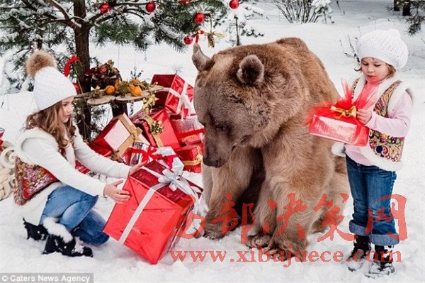 據(jù)英國(guó)《每日郵報(bào)》12月22日?qǐng)?bào)道,近日,網(wǎng)上流傳的一些父母讓孩子與灰熊一起拍攝圣誕節(jié)照片的圖片引起了網(wǎng)友們的關(guān)注,據(jù)了解,照片中的兩個(gè)小姑娘名為Alice和Eve,這兩個(gè)可愛(ài)的小家伙今年都不到10歲,但是照片中勇敢的她們卻滿心歡喜地和灰熊擁抱拍照。