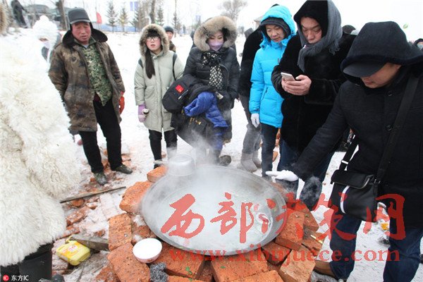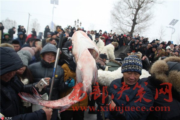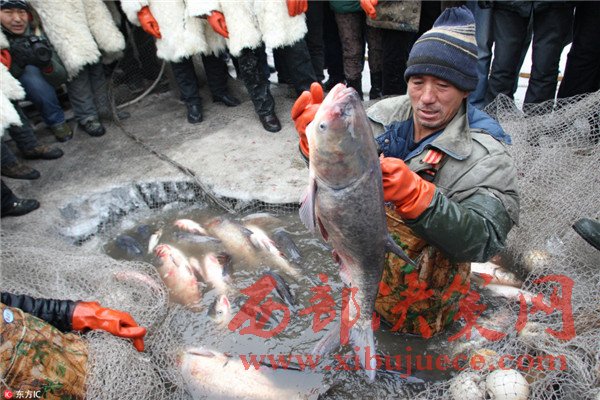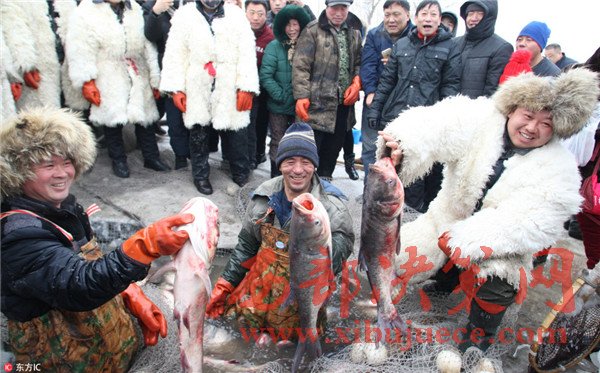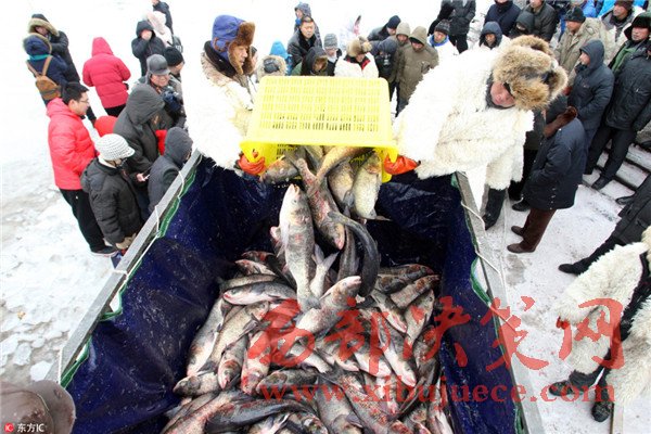 2016年12月25日,哈爾濱市長(zhǎng)嶺湖舉行第三屆冬捕冬釣旅游節(jié)?,F(xiàn)場(chǎng),漁民鑿開(kāi)冰封的湖面,首網(wǎng)撈起萬(wàn)余斤鮮魚(yú),吸引了許多市民和游客前來(lái)觀看。冰面上支起大鍋,現(xiàn)場(chǎng)熬制鮮魚(yú)湯供人們品嘗。