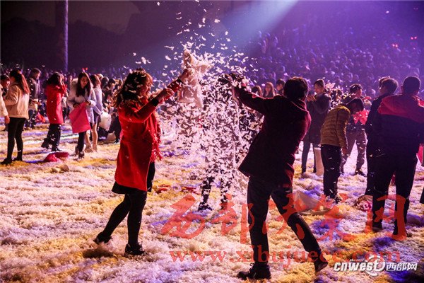 12月24日是西方傳統(tǒng)節(jié)日平安夜,風靡全球的“枕頭大戰(zhàn)”在西安大唐芙蓉園舉行,眾多青年男女相聚于此,拋卻煩惱與壓力,火熱“開戰(zhàn)”,歡樂與羽毛齊飛。