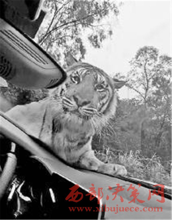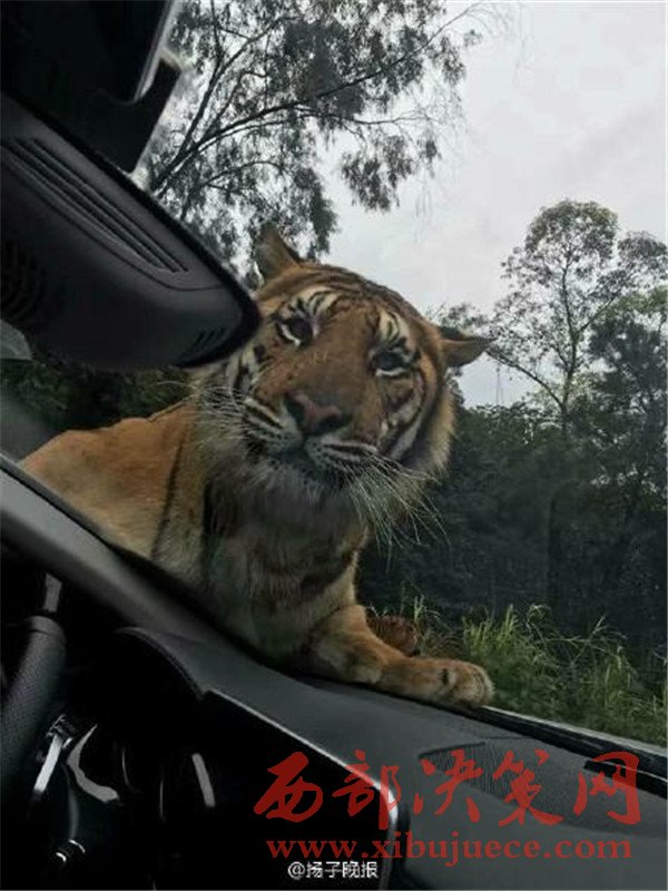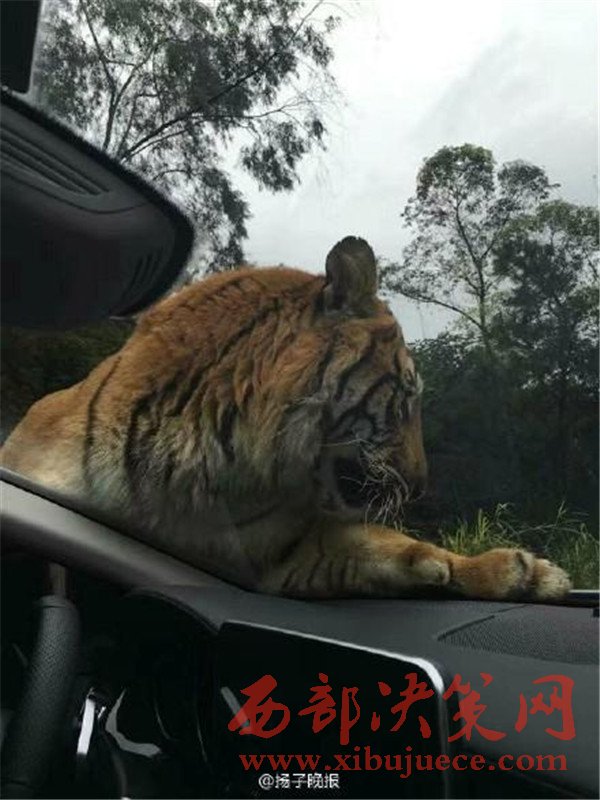 媒體分享的照片顯示,在樂和樂都自駕體驗(yàn)區(qū),一只體型巨大的老虎攔下了一輛游客車輛,隔著擋風(fēng)玻璃向車內(nèi)張望,隨后又直接趴在了引擎蓋上。觀察到這一情況后,園區(qū)的工作車輛迅速趕到,將老虎驅(qū)離,整個過程有驚無險(xiǎn)。