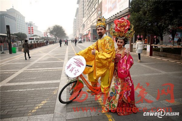 “唐玄宗”“楊貴妃”穿越西安街頭 倡導(dǎo)低碳生活