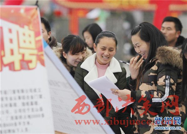 2月7日,在湖南省龍山縣“春風(fēng)行動 ”現(xiàn)場招聘會上,求職者在互相交流。春節(jié)假期過后,各地陸續(xù)迎來求職招聘高峰。