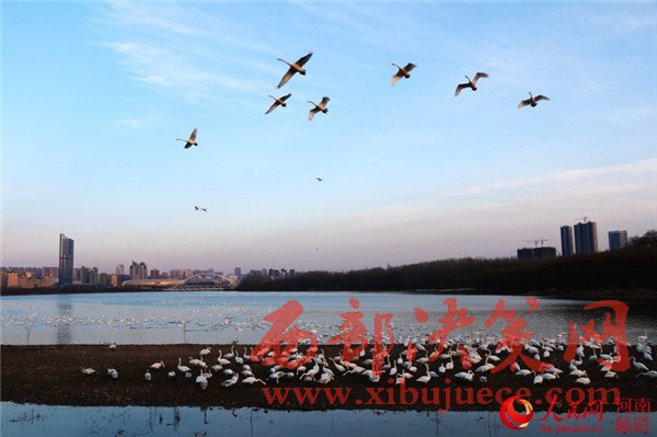 元宵節(jié)后,隨著天氣回暖,位于河南省西部的三門峽市迎來了晴朗的好天氣,在市區(qū)天鵝湖棲息越冬的白天鵝也翩翩起舞,引吭高歌。