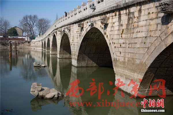 2月15日,位于南京城東運(yùn)糧河上的明代古橋七橋甕橋墩上長期隱藏水中的四只“怪獸”露出了水面,據(jù)南京城市史學(xué)者胡卓然介紹,這是古人設(shè)計(jì)在橋的分水墩上的分水獸,不僅能分水,減輕水流對橋體的沖擊,同時還標(biāo)出了航道,能防止河中的行船撞上橋墩和橋體。據(jù)了解,七橋甕始建于明代,全長89.6米,高25米,橋身酷似彎弓,共有七個橋甕,時間一長,“七橋甕”的名字被叫開了。