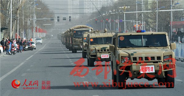 隨著一聲令下,戰(zhàn)士們登上戰(zhàn)車,警燈閃爍,警笛齊鳴,氣勢磅礴。一支威武之師、鋼鐵之師、正義之師吹響沖鋒號,在烏魯木齊市主要街道和重點(diǎn)部位進(jìn)行武裝巡邏。