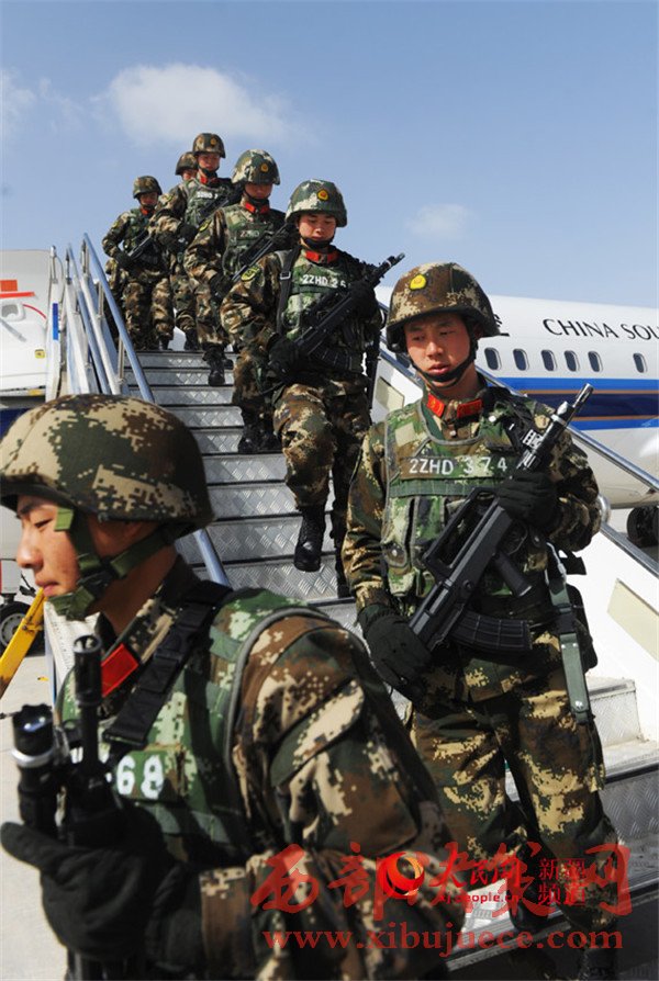 參加反恐維穩(wěn)誓師大會的武警官兵到達(dá)阿克蘇機(jī)場,向任務(wù)區(qū)進(jìn)發(fā)。