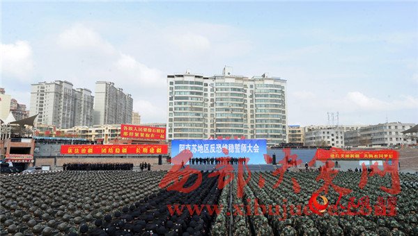 自治區(qū)反恐維穩(wěn)誓師大會現(xiàn)場。