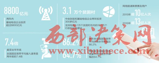 圍繞網(wǎng)絡降費,中國電信、中國聯(lián)通、中國移動3家基礎電信企業(yè)實施了固定寬帶提速不提價,移動流量當月不清零、免費贈送流量,取消京津冀手機長途和漫游費,取消成渝城市群內(nèi)手機長途和漫游費,推出全國性資費優(yōu)惠方案和地方性優(yōu)惠套餐等。兩年來,網(wǎng)絡資費水平持續(xù)下降。全國固定寬帶平均資費水平降幅達到86.2%,全國移動寬帶流量平均資費水平降幅達64.7%。綜合測算,2015年、2016年網(wǎng)絡提速降費惠及用戶分別超過10億人次和13億人次。