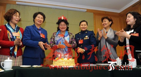 這是一次為6位女委員慶祝節(jié)日的聚會(huì),更是一次民族團(tuán)結(jié)的聯(lián)誼。6位女委員分別來(lái)自漢族、維吾爾族、錫伯族、烏孜別克族、柯爾克孜族,姐妹們?cè)谝黄饏⒓尤珖?guó)兩會(huì)已有5年,雖然并不在同一個(gè)界別,但大家互幫互學(xué)互助,早已結(jié)下了深厚的友誼。每年“三八”婦女節(jié)都恰逢全國(guó)兩會(huì),姐妹們相聚在一起,同慶節(jié)日,親如一家。