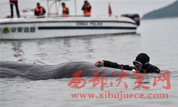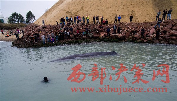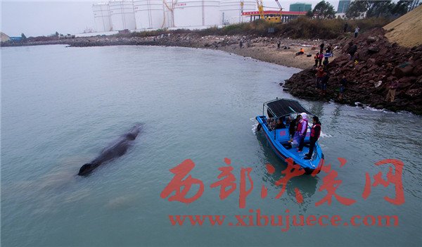 3月14日,救助誤入廣東大亞灣海域抹香鯨的行動繼續(xù)。據(jù)廣東省惠州市海洋與漁業(yè)局通報(bào),13日晚抹香鯨游入惠州港油庫碼頭附近海域,專家根據(jù)現(xiàn)場情況反饋:鯨魚身體狀況不佳。14日下午,抹香鯨呼吸次數(shù)減少,游動速度減慢甚至停滯不前,情況不容樂觀。隨著潮水退去,可以判定鯨魚已經(jīng)擱淺。