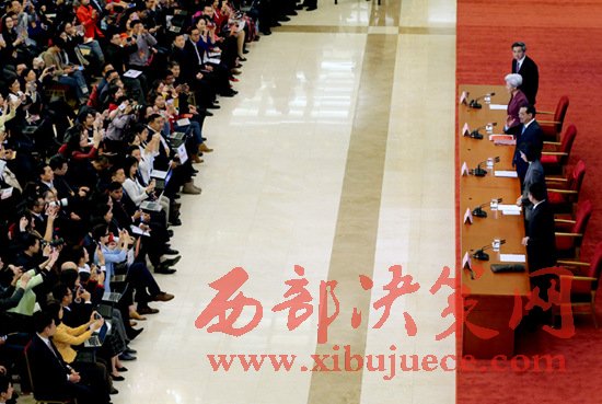 圖為3月15日,國務(wù)院總理李克強(qiáng)在北京人民大會堂與中外記者見面,并回答記者提問。