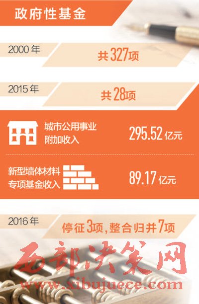 經(jīng)過幾輪清理規(guī)范后,到2015年,政府性基金已從2000年的327項減少到28項。2016年,國家進(jìn)一步清理收費(fèi)基金,停征價格調(diào)節(jié)基金等3項政府性基金,整合歸并散裝水泥專項資金等7項政府性基金。特別是針對小微企業(yè),加大了降費(fèi)力度。