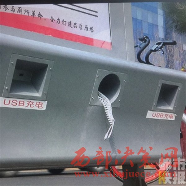 西安小寨街頭出現(xiàn)便民導(dǎo)廁神器,還能給手機(jī)充電。