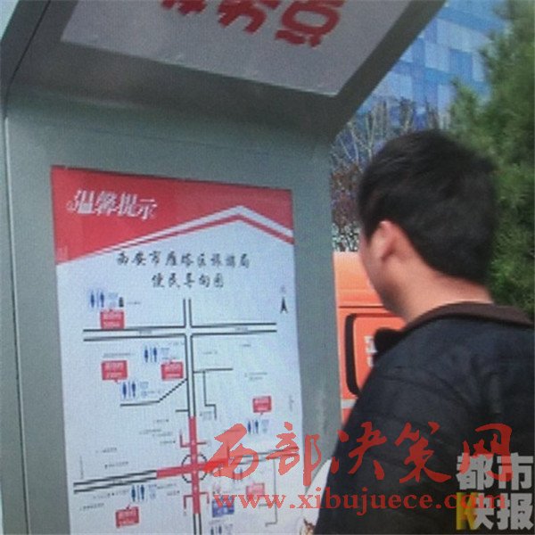 西安小寨街頭出現(xiàn)便民導(dǎo)廁神器 還能給手機(jī)充電