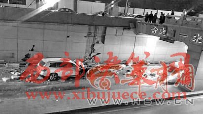 原標(biāo)題:西安男子酒后開(kāi)車掉進(jìn)含光門隧道差點(diǎn)砸中出租車