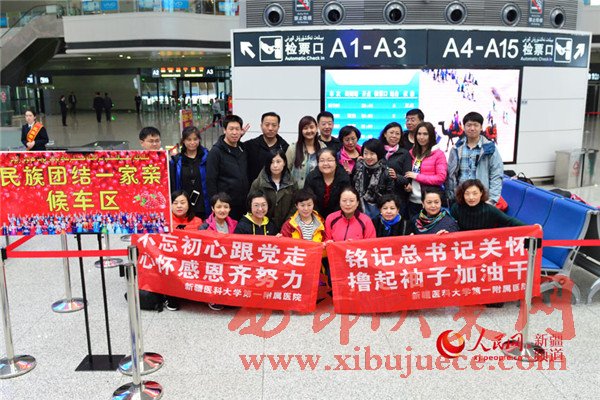 去和田“走親戚”的新疆醫(yī)科大學(xué)第一附屬醫(yī)院的干部人才在發(fā)車前合影留念