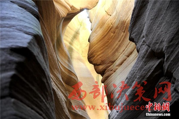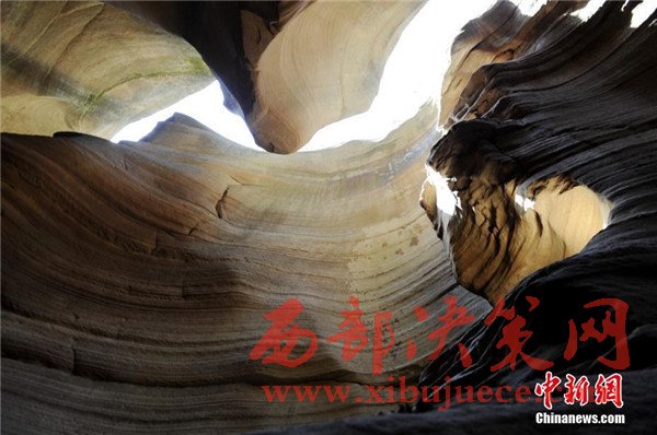 位于陜西省甘泉縣雨岔村的峽谷,是陜北黃土高原上的地質(zhì)奇觀,峽谷內(nèi)壁凹凸不平、線(xiàn)條流暢,走進(jìn)峽谷,峽壁上的線(xiàn)條如波浪從身邊劃過(guò),最窄的地方只有一個(gè)人側(cè)著身子方可過(guò)去,其迷人之處與美國(guó)羚羊峽谷相媲美。
