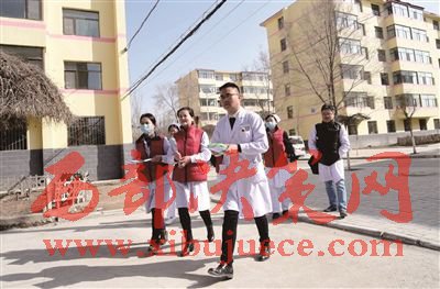 家庭醫(yī)生服務(wù)團(tuán)隊人員走在上門訪視的路上。