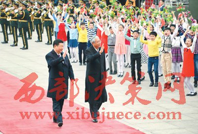 會談前,習(xí)近平在人民大會堂東門外廣場為吳廷覺舉行歡迎儀式。習(xí)近平主席夫人彭麗媛、全國人大常委會副委員長嚴雋琪、國務(wù)委員楊潔篪、全國政協(xié)副主席王家瑞等出席。