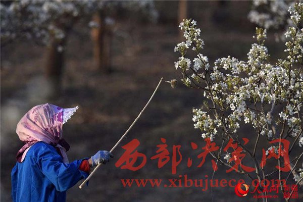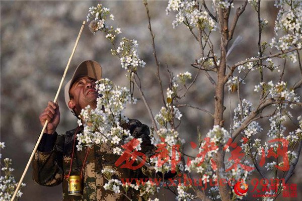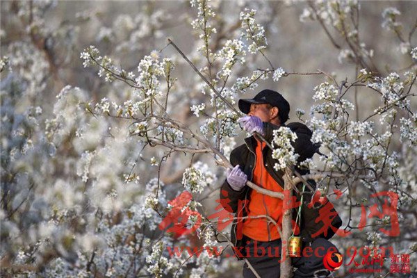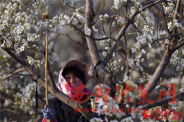 新疆庫(kù)爾勒梨花艷 果農(nóng)授粉保豐收