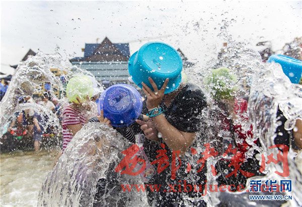 當日,一年一度的萬人潑水狂歡在云南西雙版納景洪市舉行,吸引數(shù)萬名當?shù)厝罕姾陀慰蛥⒓印?/span>
