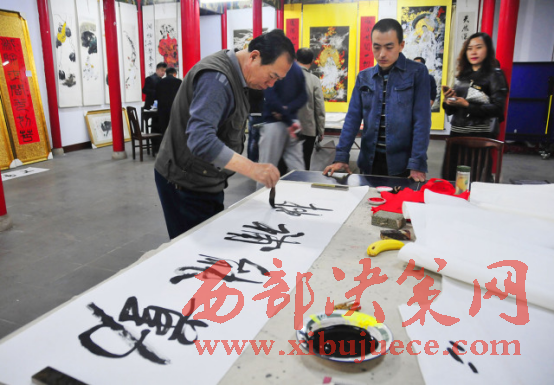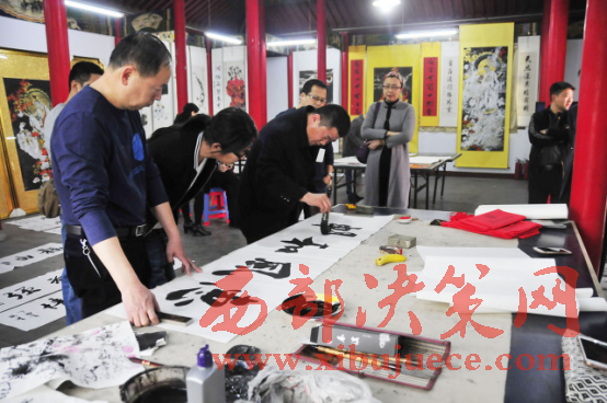 西部決策網(wǎng)-西部大開發(fā)訊(胡玉敏 通訊員 李海其 胡玉軍)4月13日下午,河北省邢臺市橋西區(qū)知聯(lián)會、邢臺市橋西區(qū)政協(xié)第三委員小組,在紫金公園聚義廳開展了書法文化交流活動。活動特邀我市知名書畫家現(xiàn)場揮毫潑墨,切磋書畫技藝,創(chuàng)作作品20余幅。民盟市委副主委付曉婭,橋西區(qū)政協(xié)主席張建波、區(qū)政協(xié)副主席趙振群、王之良等領(lǐng)導(dǎo)應(yīng)邀參加。