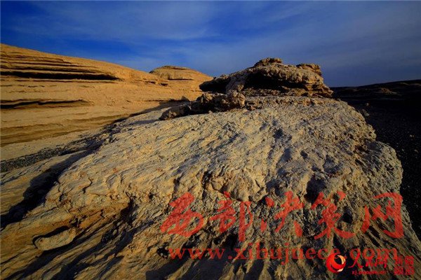 太陽即將落山,暖柔的夕陽灑向托克遜雅丹地貌,身入其中,如同置身一座被風跡沖刷過的黃金宮殿。